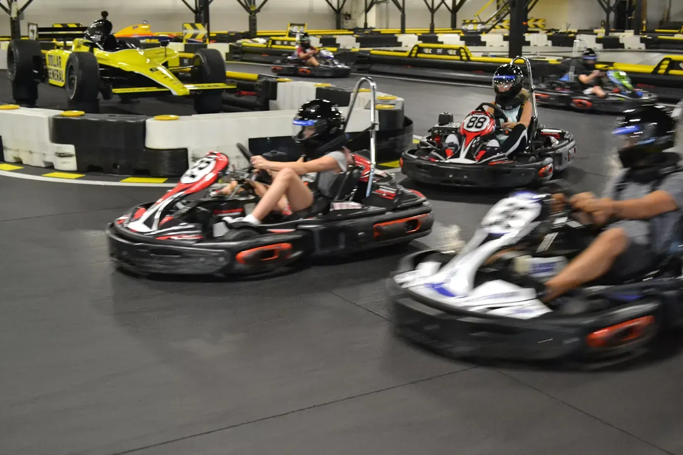 The multi-turn, multi-level road course is sure to get adrenaline pumping with its challenging corners and fast straightaways, providing excitement for everyone and serving as the most popular option. Adding flair to the facility, the high-speed oval slick track gives drivers an intense experience unlike any other, as it's fast-paced, physically demanding, and most importantly, fun for all ages. Between the road course and superspeedway oval, Speedway Indoor Karting has tracks that thrill novice and skilled karters alike.